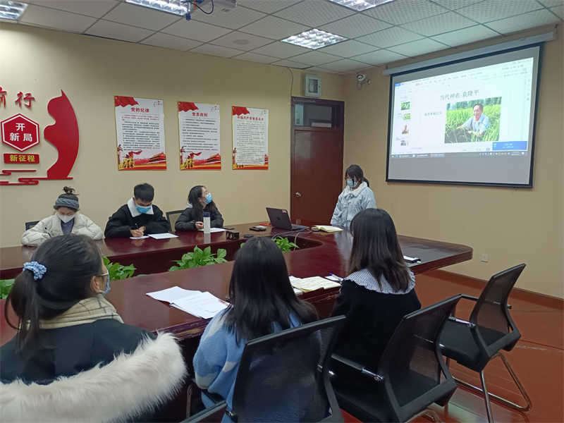 杨风琴同学为我们介绍的是袁隆平,她提到了袁隆平院士的“两梦”,一个是禾下乘凉梦,一个是杂交水稻覆盖全球梦。袁隆平院士用自己的毕生所学为国家为人民付出,把爱国精神展现的淋漓尽致。