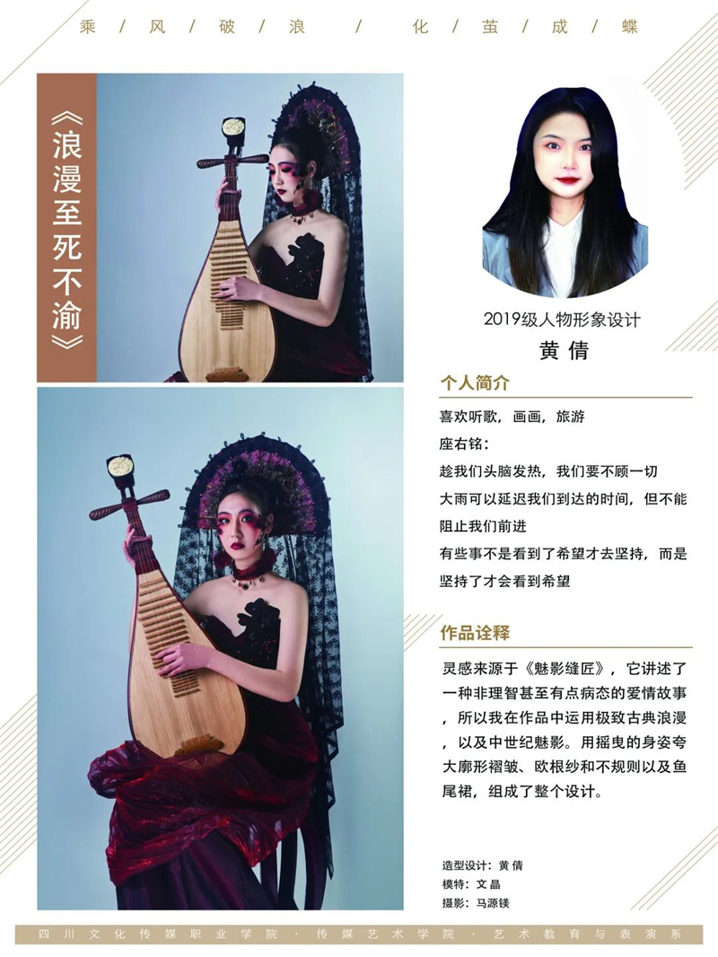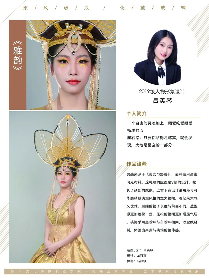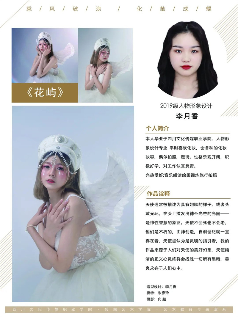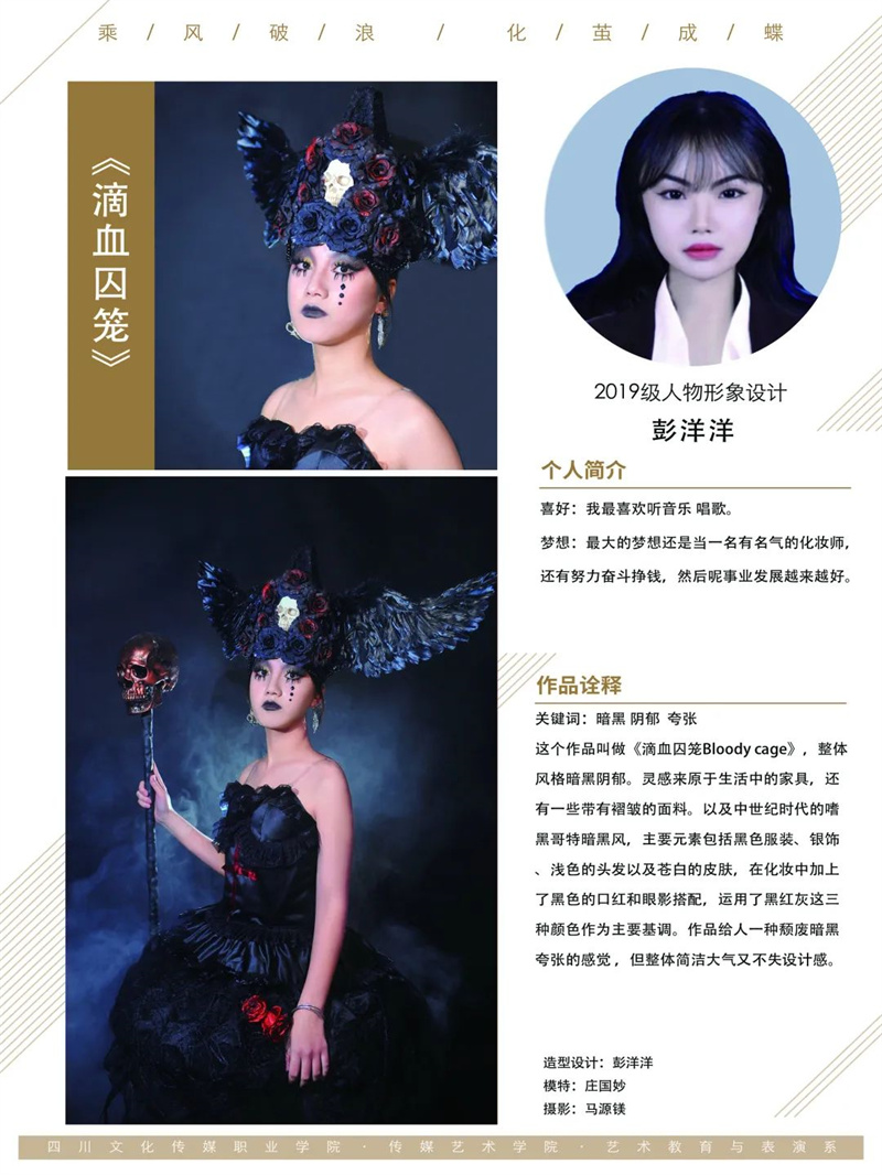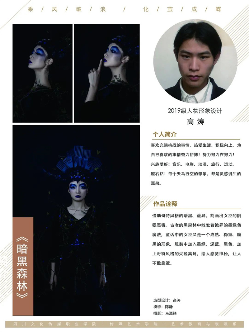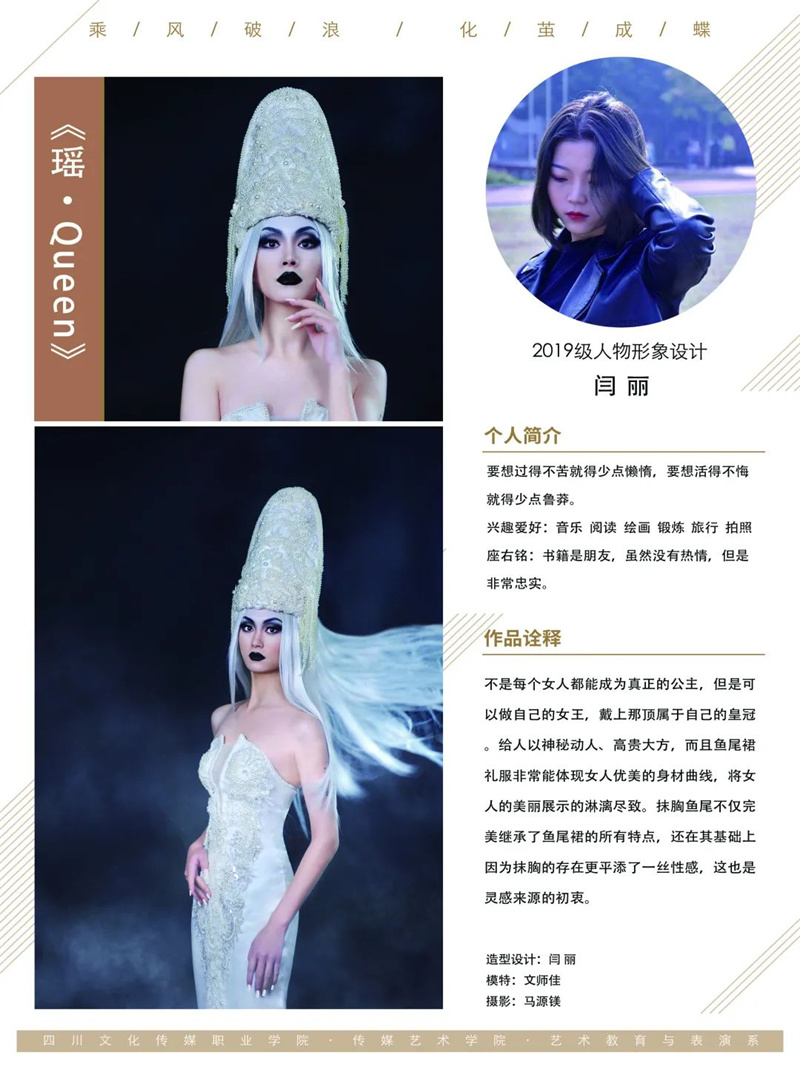 近日,四川文化传媒职业学院人物形象设计专业举办了沉浸式静展与服装灯光走秀毕业系列展,本次毕业展的主题由“化茧成蝶”、“乘风破浪”两个部分组成。