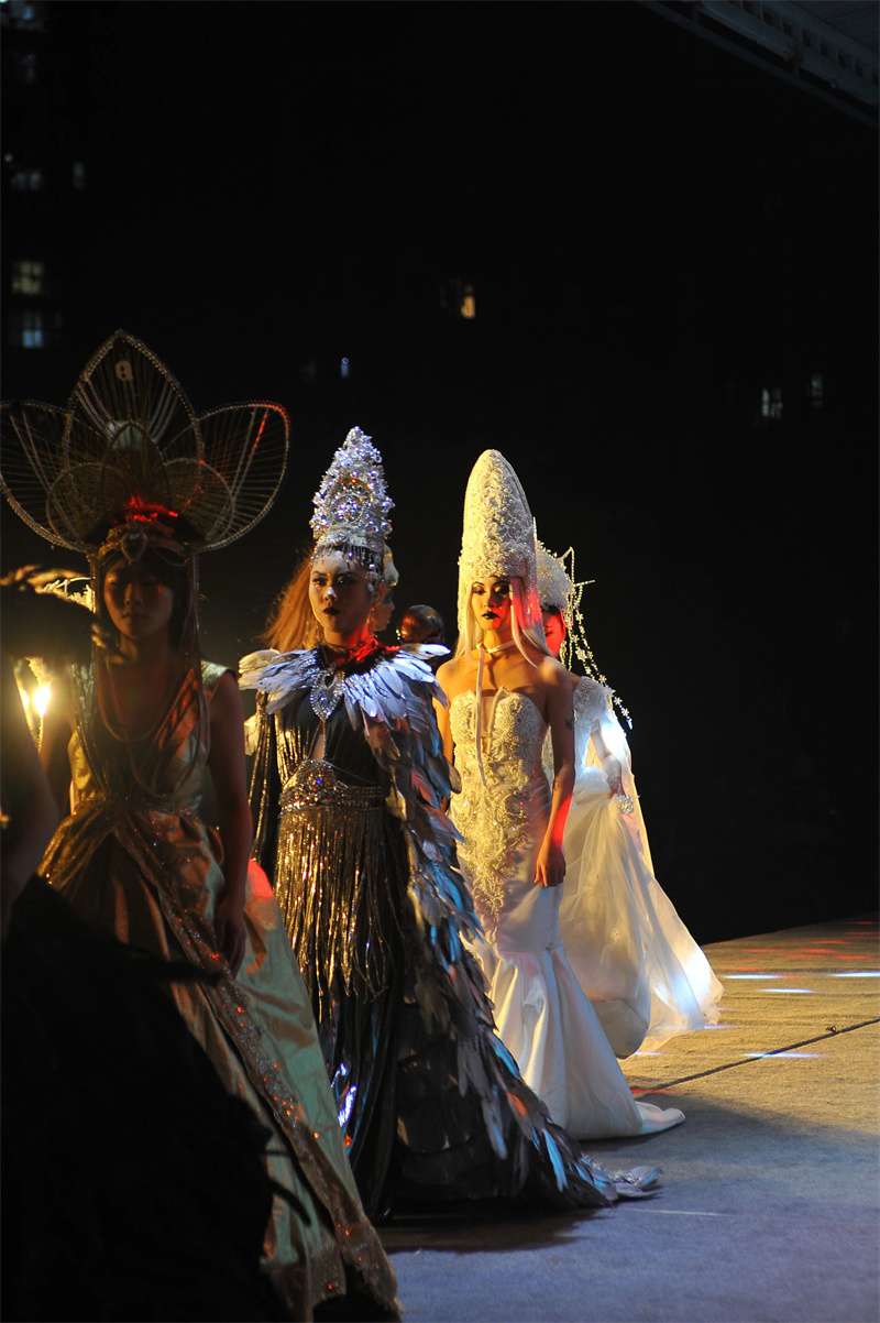 本次毕业展礼服将多元素和时尚潮流的设计理念相互结合,打破思维的界限,突破传统的剪裁,大胆进行面料再创造。作品风格多元,服装款式造型多样,面料种类繁多,有印花面料、婚纱缎、皮革、金属、毛皮、编织面料、塑料、天鹅绒等等。制作工艺上比较特殊的有手工刺绣、面料拼贴与再造、面料染色、图案印染等。