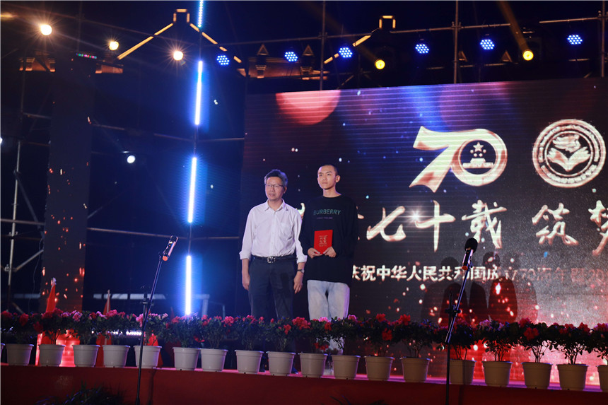 9月28日晚,四川文化传媒职业学院《璀璨七十载 筑梦新时代》庆祝新中国成立70周年暨四川文化传媒职业学院迎新晚会于绵竹校区操场隆重举行,齐天镇团委副书记巩凤华、齐天学校校长杨敏、齐天幼儿园院长代海燕、绵竹市红樱桃幼儿园院长甄娟、学院执行院长罗琴、党委书记谢桂兰、副院长李忠民、副院长罗江、院长助理陈雷出席本次晚会,全院中层干部、辅导员以及19级全体新生参加本次晚会。