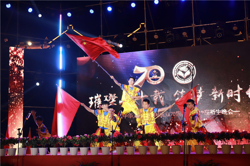晚会伊始,执行院长罗琴致辞。今天,我们满怀喜悦的心情欢聚一堂,共同庆祝新中国成立70周年。首先,在中国共产党的领导下,我们国家发生了翻天覆地的变化,特别是改革开放以来,国民经济持续快速稳定发展,综合国力不断增强,人民生活不断改善,文化生活日益丰富。其次,“少年强则国家强,少年盛则国家盛。”作为未来的主人,文传每一位学子你们有责任、有义务继续担负起中华民族伟大复兴的重任,树立远大的志向和抱负,从现在做起,从身边的小事做起,勤奋学习,严以律己,用自己的一言一行为祖国增光!最后,让我们衷心祝愿我们伟大的祖国更加繁荣富强!