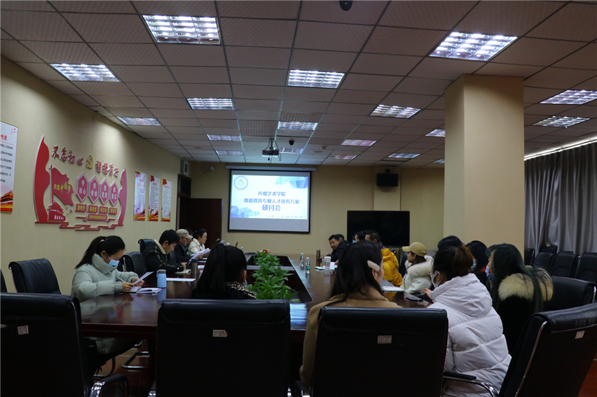 为促进学院舞蹈教育专业发展,培养高质量的舞蹈教育人才,1月4日下午2点,四川文化传媒职业学院在崇州校区四楼会议室组织召开了传媒艺术学院舞蹈教育专业人才培养方案研讨会,学院副院长黄正文教授、教务处处长丁多祥、传媒艺术学院院长彭代明教授、传媒艺术学院副院长于兴财副教授、人事处副处长廖自春、督导室王园园及传媒艺术学院全体舞蹈教师参加了会议,会议由传媒艺术学院副院长何柳主持。