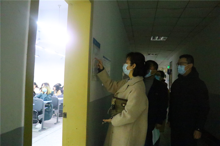 院领导深入到各教学楼,不时驻足观摩教师授课情况和学生出勤情况,并就进一步完善设施设备、优化教学环境、提高学习氛围等与相关职能部门负责人进行交流。