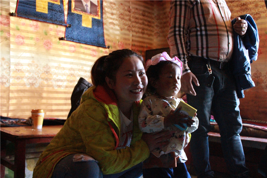 初到石渠时,韩嫣不会藏语,需要村上熟悉汉语的村民做翻译或者用手势和村民交流。交流的困难和环境的艰苦让这个年轻的女孩曾一度产生放弃的念头,但每每想起村民的质朴和村干部的嘱托,她又坚持了下来。走村入户深入细致了解情况,宣讲党的路线方针政策;挨家挨户走访、了解家庭情况,让老百姓感受和知道党的关怀和温暖;4个月来,韩嫣陆续为51户贫困户205名贫困人口建档立卡,并建立了51户贫困户收支台帐。随着了解的深入熟悉后,每次结束信息收集,牧民家里的小孩儿总会跟在韩嫣身后,一直陪伴着她走一段路,并一直念叨着“老师好,老师辛苦了。”小朋友用最淳朴的方式告诉着韩嫣,自己的工作正在逐渐深入村民、走进他们的心里。