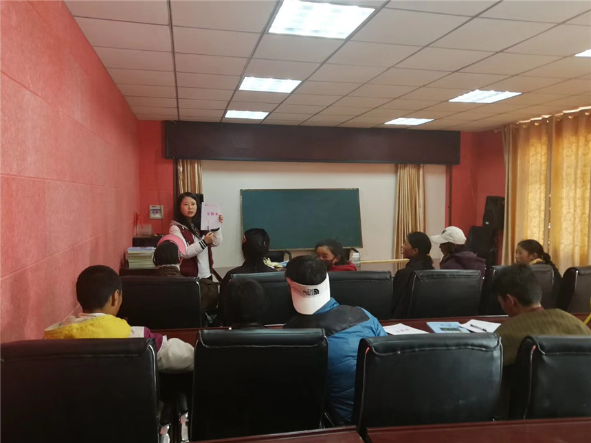 俗语说“治贫先治愚,扶贫先扶智。”除了统计贫困人口登记资料,在尔玛底村韩嫣也进行着保辍控学和文化扫盲工作。到每户适龄孩子家中走访,反复与家里人沟通要求适龄小孩必须返校入学,尔玛底村对12-16岁未入过学的大龄青少年开设了扫盲班。长须贡玛乡共有2所学校。9月初,韩嫣和另一位同事一起给尔玛底村保辍控学的20个孩子进行了为期半个月的教学,给孩子们讲解基础的数学知识。有一段时间路上塌方,几个孩子的爸爸会骑着摩托把他们送过来。从成都过去的厨师因适应不了石渠县的艰苦离开了,食堂里没有厨师,孩子们会自己带干粮过来,中午吃了下午继续上课。“当时就想着,虽然任务艰巨但使命光荣,下定决心一定要让孩子们学到知识。终于一份耕耘一份收获,半个月下来他们从不知道1、2、3、4到现在会做50以内的加减法。”说起这段,韩嫣脸上夹杂着辛酸和喜悦。迄今为止,韩嫣所驻尔玛底村无失学儿童,共劝返了6名12-16岁未入过学的大龄青少年入学扫盲班。
