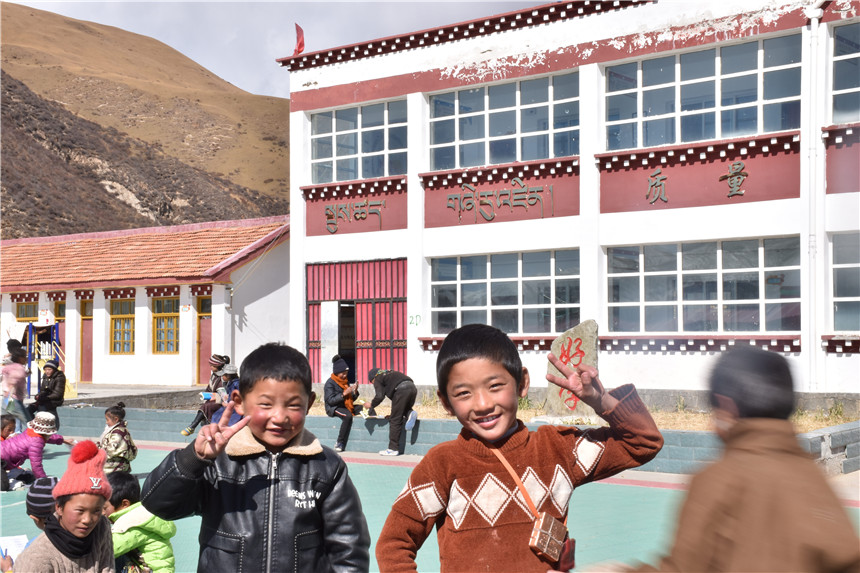 10月29日上午,我跟随扶贫小组一同驱车准备前往石渠县长须贡玛乡查家部落小学。一路顺着山势而上,海拔逐渐升高,阵阵凉意逐渐向我们袭来。这时候大家都出现了头痛、恶心、呼吸不上来这些不同程度的高原反应。司机见状再次将车速加快,想的是更早到达查家部落小学,少受车上的“折磨”。不曾想到,我还是坚持不住,询问能否停车,于是大家都决定下车走走。刚下车,胃里仿佛翻江倒海一泻而出。这时,两位当地村民向马路这边赶路走来,我立马起身,不知道是按捺不住尴尬还是内心对当地人的陌生感,我尽量让自己看起来若无其事,然后慢慢地向前走去。