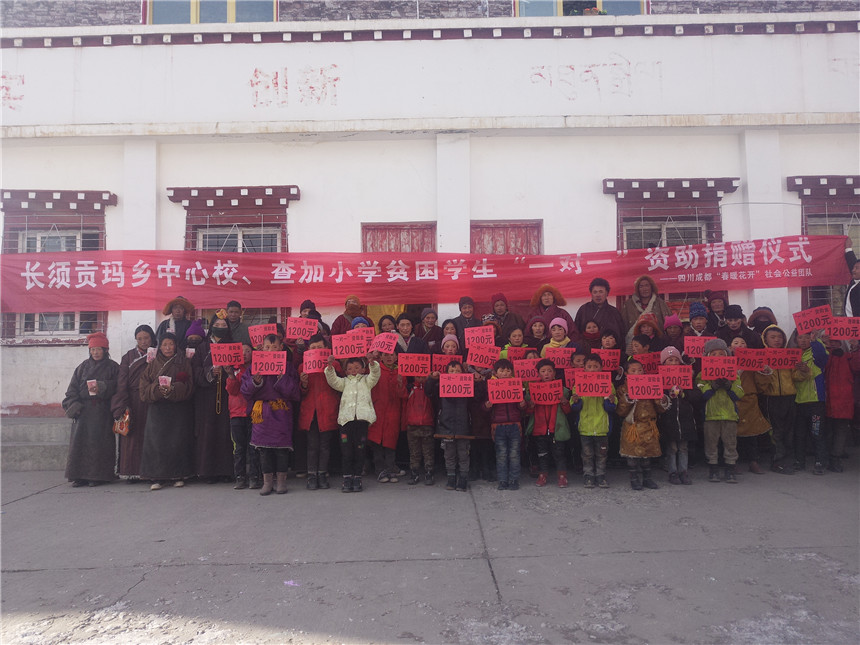 今天最高气温仅有零下12℃,最低气温零下21℃。给长须贡马乡中心校、扎加部落村小的学生的爱心捐款到了,要发放给孩子们。我有些小开心,早早地起床,追着严寒风雪赶往长须贡马乡尔马底村。