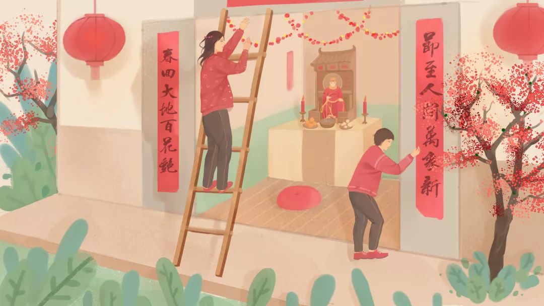 春联:亦名“门对”、“对联”、“桃符”等,是对联的一种,因在春节时张贴,而得名。