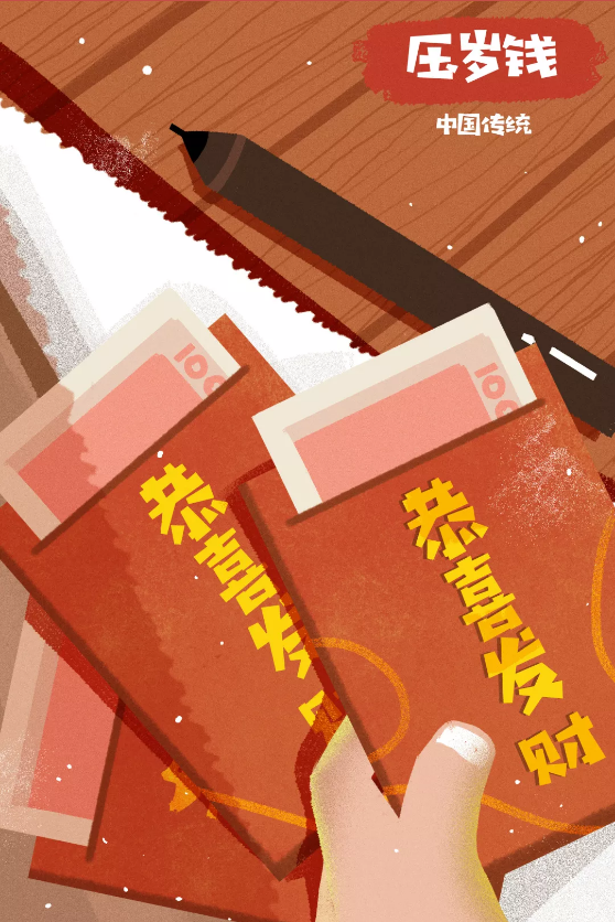 压岁钱是由长辈发给晚辈的,有的家里是吃完年夜饭后,人人坐在桌旁不许走,等大家都吃完了,由长辈发给晚辈,并勉励儿孙在在新的一年里学习长进,好好做人。