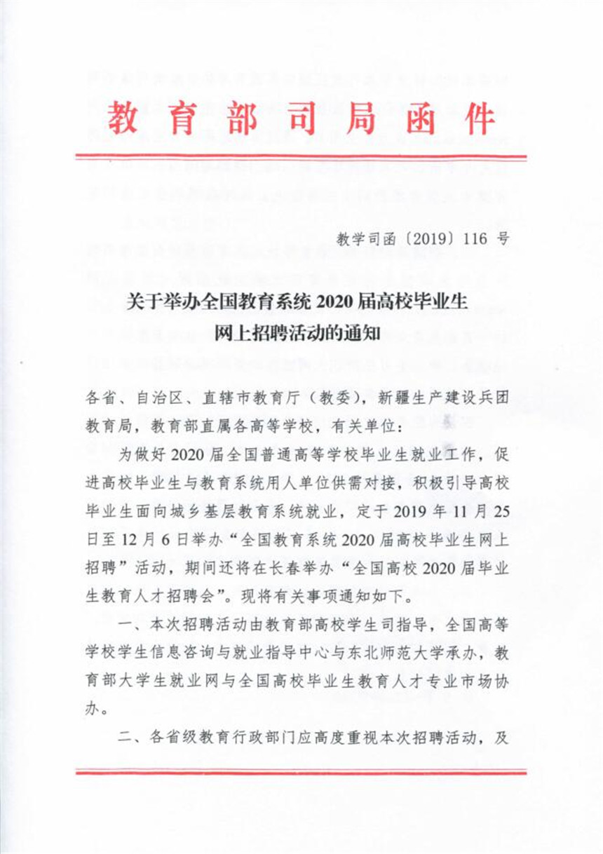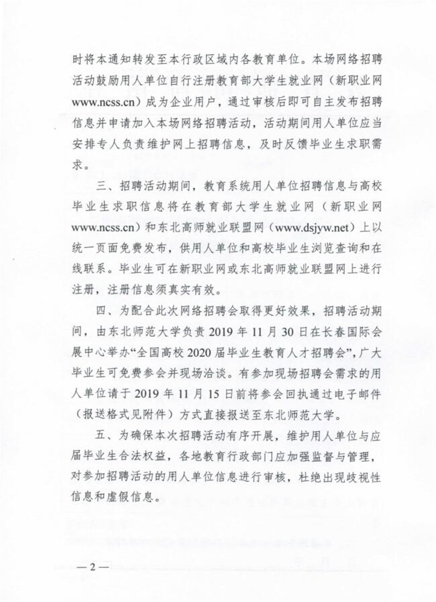 全国教育系统2020届高校毕业生网上招聘会: