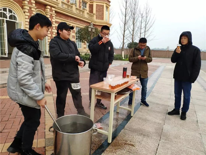 航空系团学会干部在教学楼门口以“传递温暖,感恩陪伴”为主题,为师生准备了“爱心汤”——板蓝根。