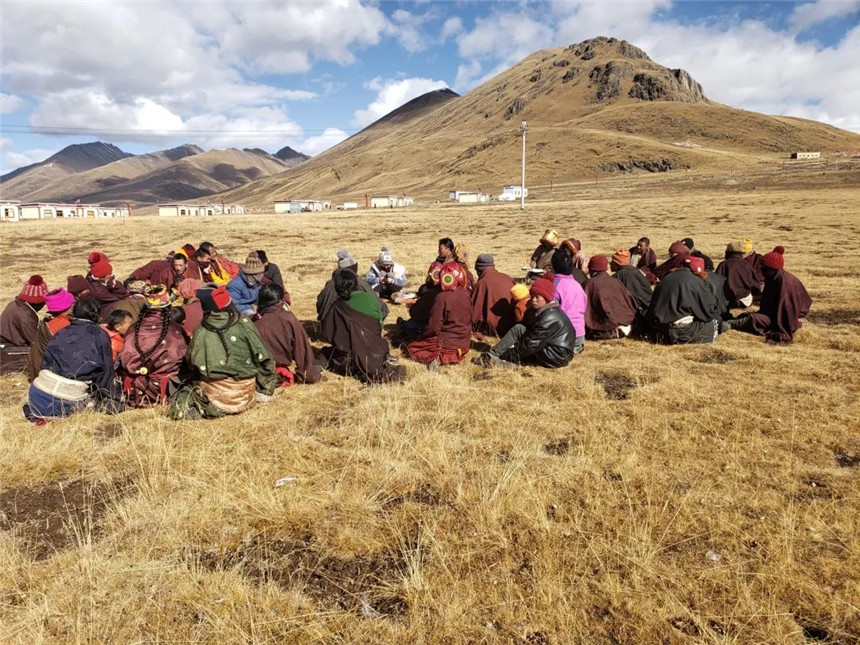早上8点生物钟准时叫醒我,今天最高气温仍然只有零下4摄氏度。经过简单的洗漱,囫囵吃了个早饭。八点半出发到村里开村民大会。石渠现在已经进入冬天,每天早上都会有霜降,经过风霜洗礼的野草变得更加枯黄,鞋子踩在草地上发出“沙沙”的声响。耳边除了呼啸的风声就只有走路的沙沙声,因为没有会议室我们开会就只能在草原上席地而坐。村民们给我们扶贫工作小组带来了一条藏毯,心里特别感动。会开了两个小时,村民也在地上坐了两个小时。开完会后,我开始看入户材料是否齐全,一直到下午5点回到乡上。其间没有时间休息吃饭,高反还是很严重,加上有些低烧、感觉头痛欲裂,很是难受。