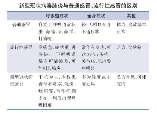 二、新型冠状病毒肺炎与普通感冒、流行性感冒的区别