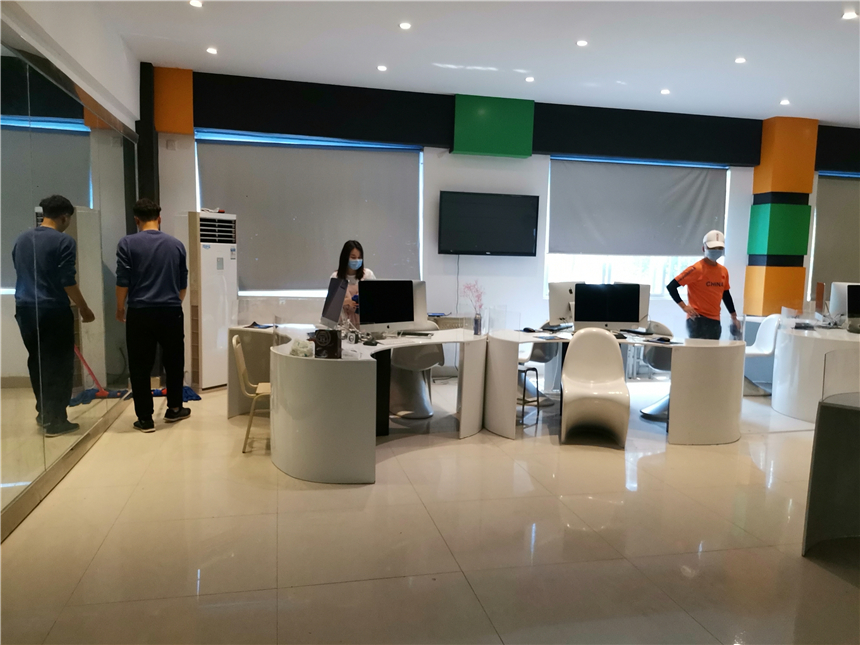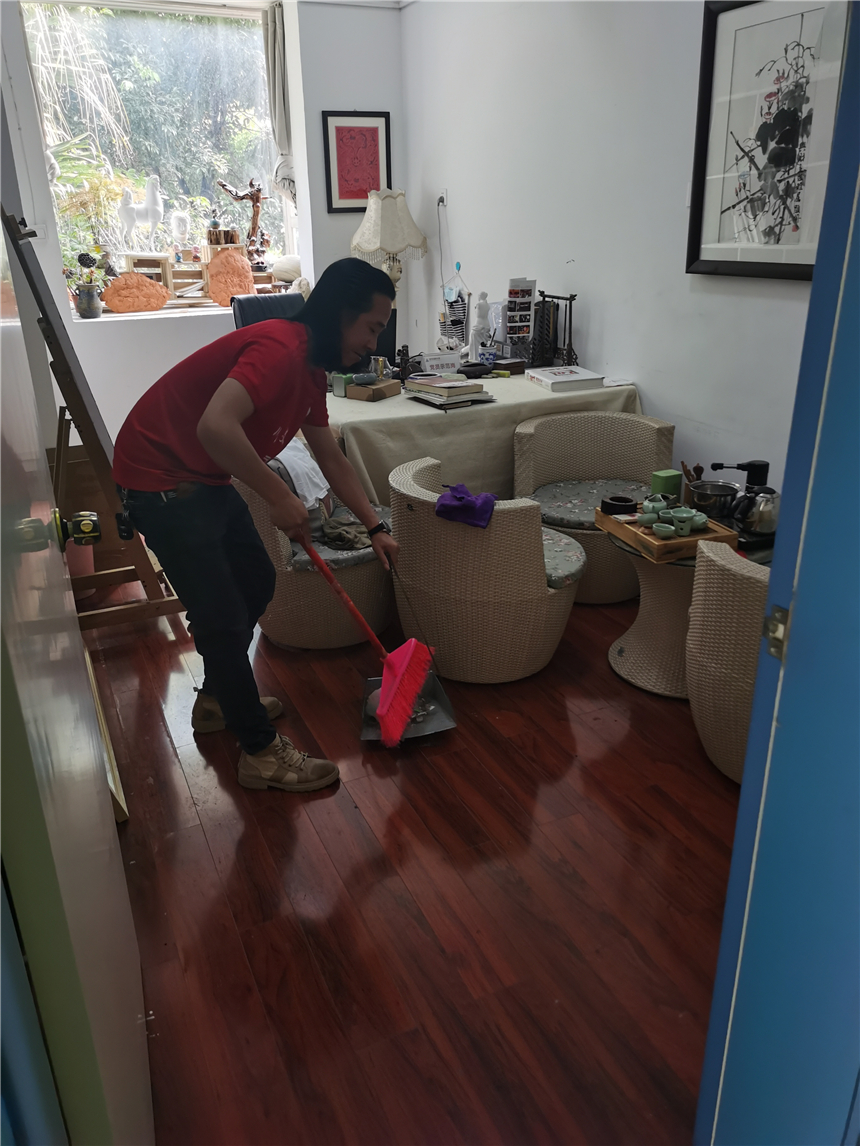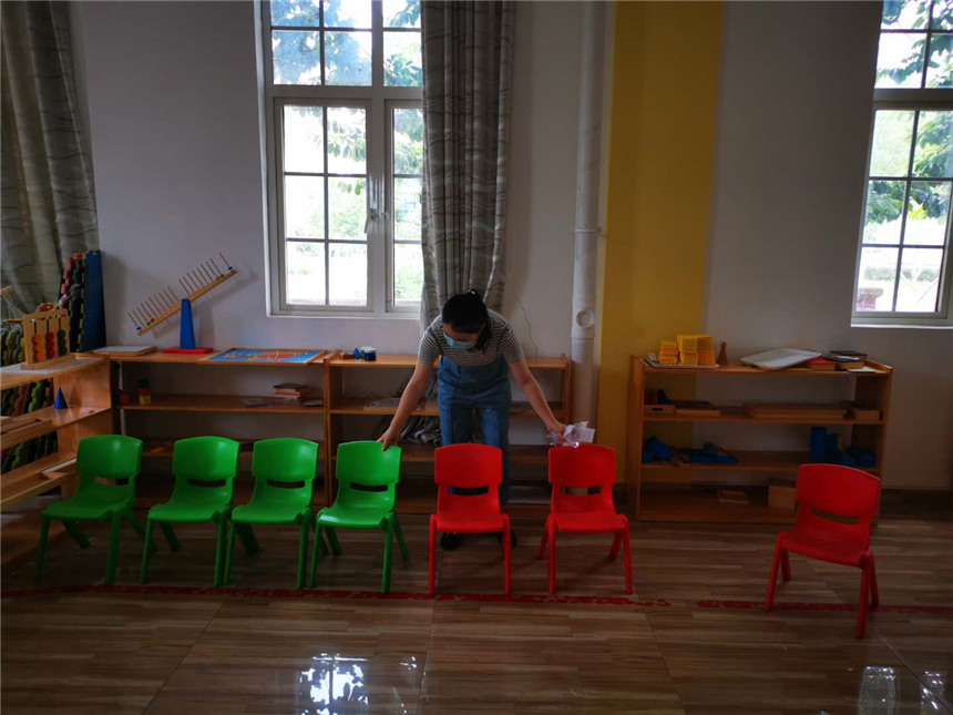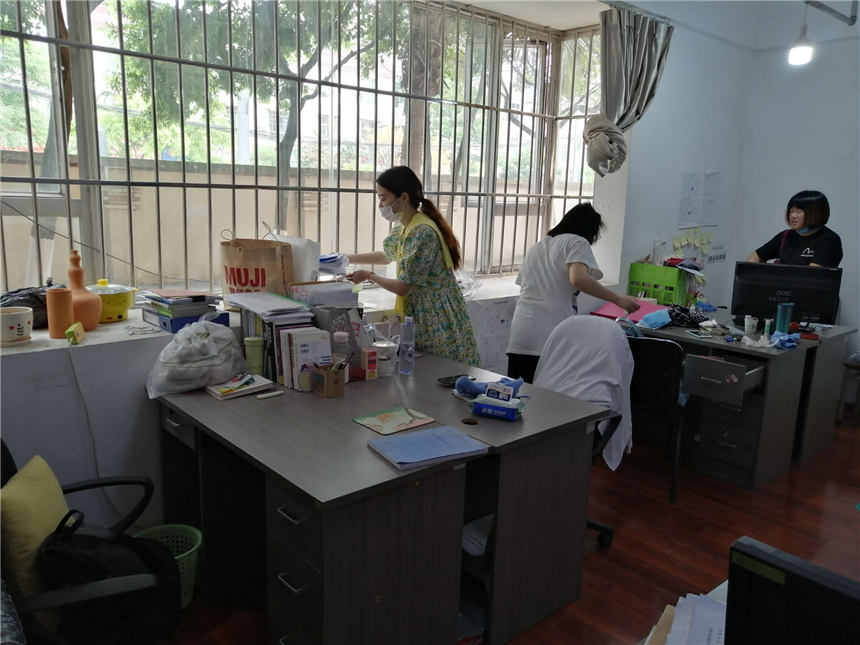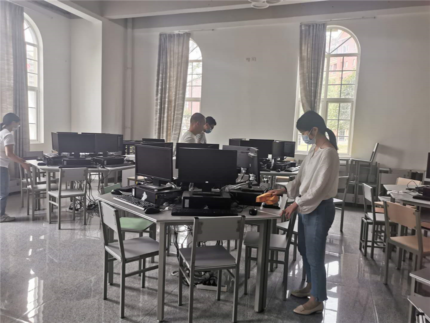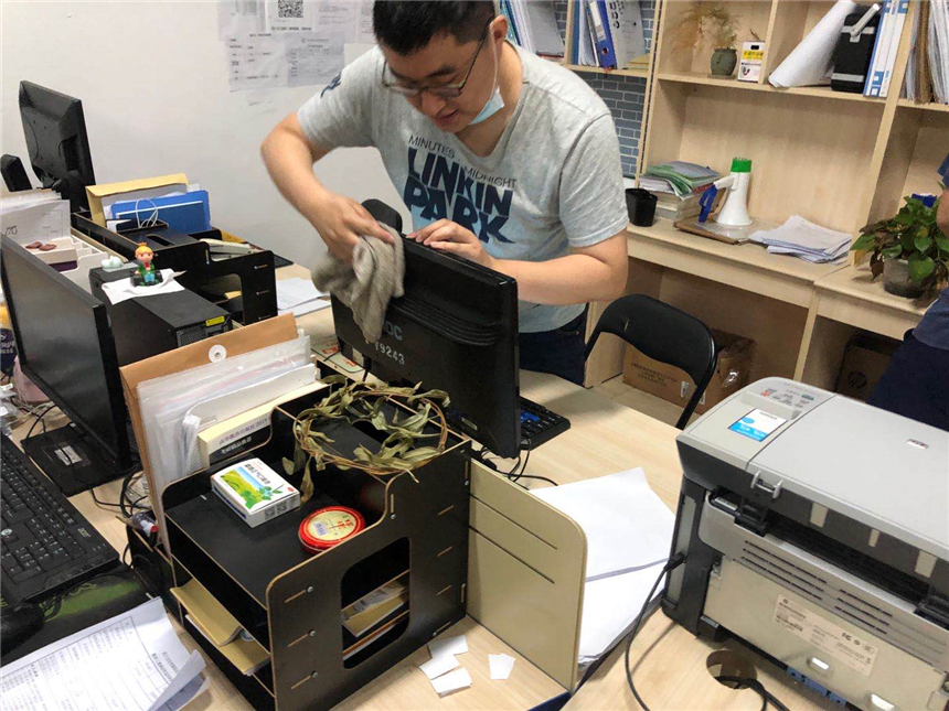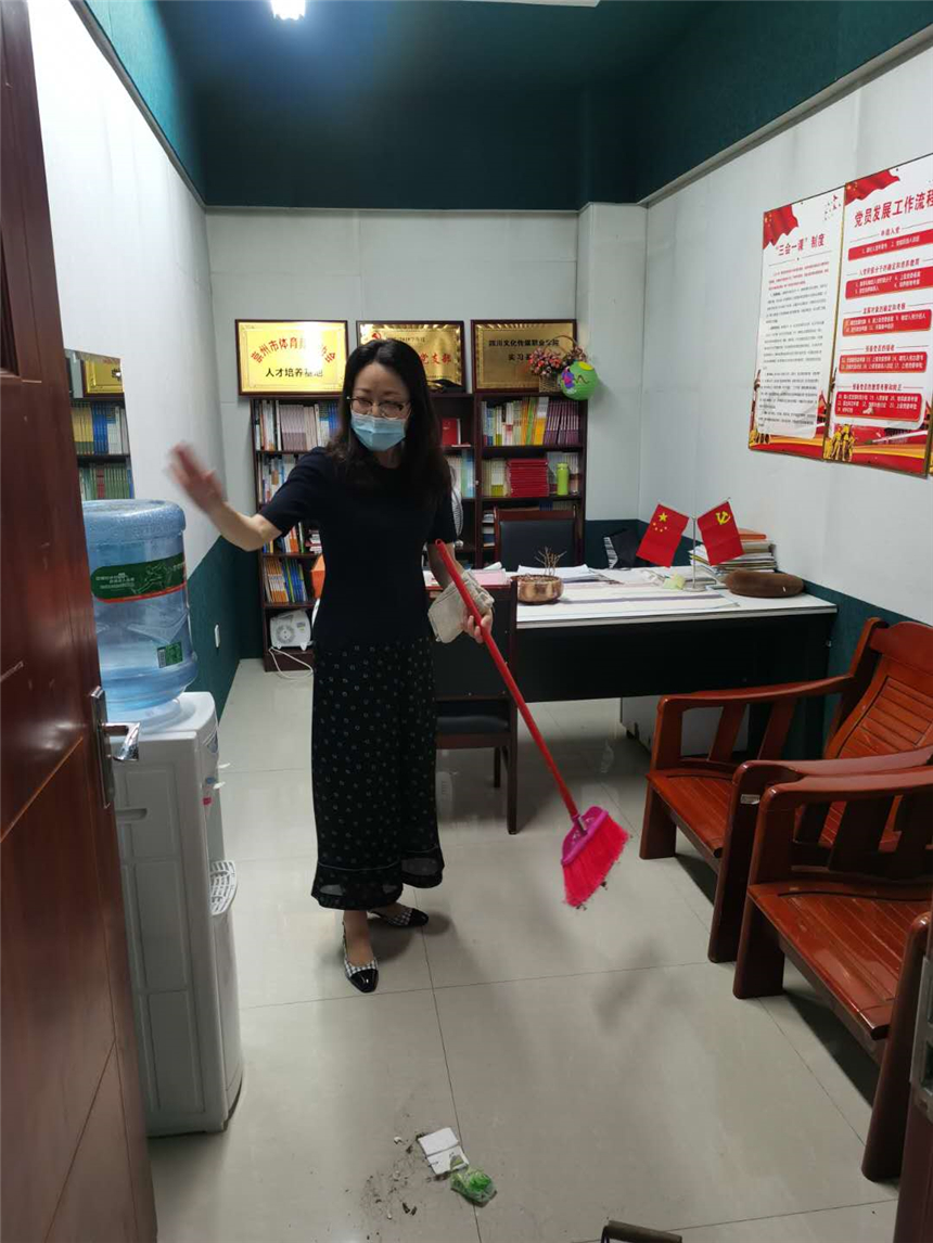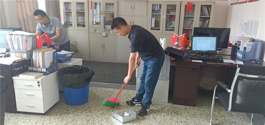 各系部教职员工对办公区域进行通风换气,打扫办公场所卫生,对办公室内的桌椅、物品消毒擦拭,营造良好的公共卫生环境。