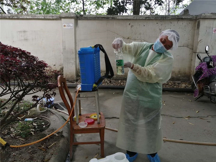 消毒药水的正确配兑,由物业专人演示。对每升浓度250--500毫克的次氯酸钠消毒液按1:100(1升消毒液兑水100升)。浓度75%的消毒用酒精不能再兑水稀释。
