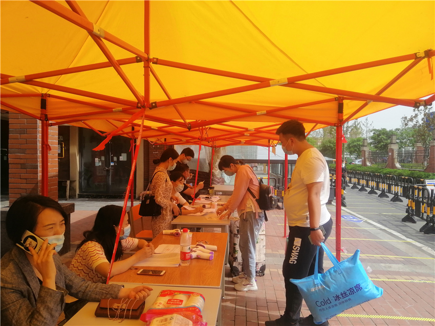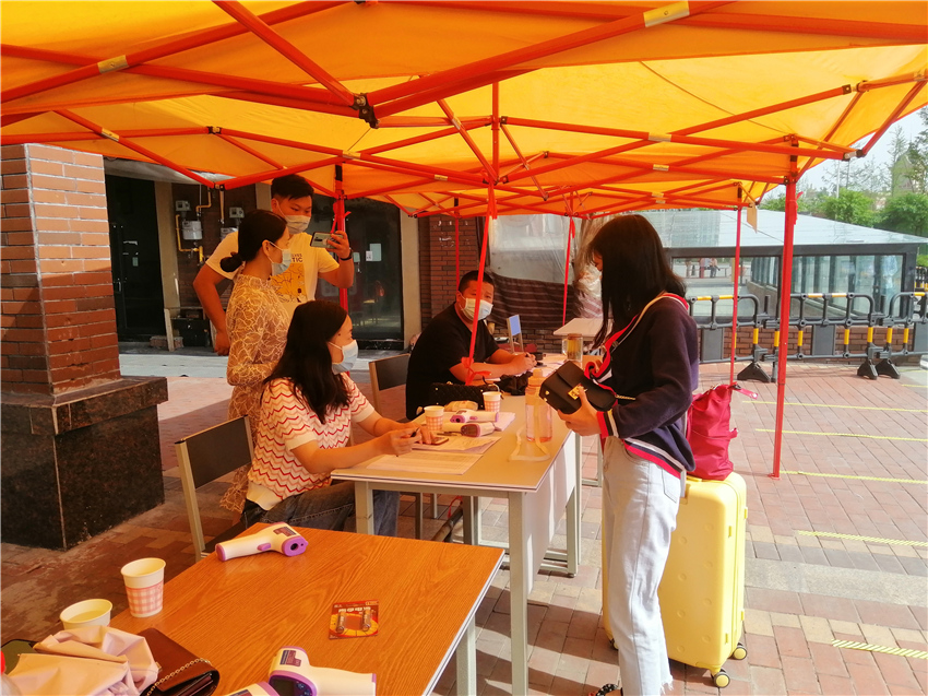 当天,学院疫情防控领导小组及疫情防控志愿者准时到岗,在绵竹校区门口等候暌违多月的学子们返校。校门口实施“一测二消三查四通过”的进校流程,测量体温、消毒、查验两码一证一书,符合条件的学生方可通过。为保障首批学生返校工作的科学有序开展,学前教育系在学院学生事务部的指导下,设立了学生返校工作组,制定《学生返校复课接待方案》。各系教师和相关部门各司其职、分工明确,现场有条不紊、秩序井然,为学生们安全返校筑起了第一道防线。