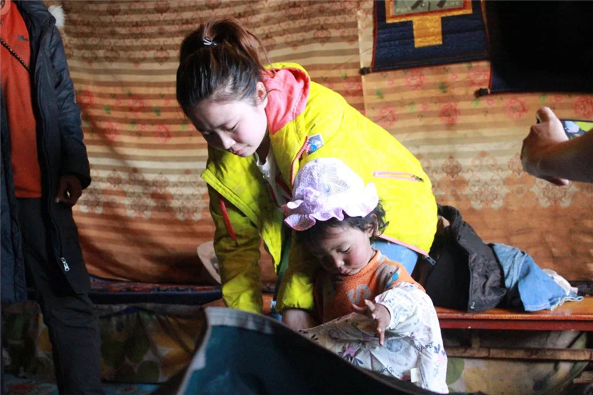 她一去就是一年。走村串户成常态,风餐露宿、翻山越岭,原本白嫩的脸庞渐渐变成了高原红。她经常步行到几十里外的牧民家里探访,累了就在途中席地而坐,喝一小口自带的饮水,稍作小憩继续赶路。因为途中没有人烟,途中的山水容易感染包虫病,不能饮用,所以她每次用水都是自己到专门的有限深水井里打水,水量有限,只能保障生活用水,原本爱美爱打扮的她,只能每月抽空到百公里之外的县城洗一次澡。但生活的困难,条件的艰苦并没有吓退她。为了尽快让当地老百姓改变生活习惯和改善居住环境,她积极动员和开展贫困户搬迁入住新房;为了控辍保学、让大龄儿童学习文化知识,她一户一户地耐心细致的做工作,并站上讲台上扫盲课;为了保护当地儿童不被晒伤冻伤,不失学辍学,她积极发动身边的力量,并利用社会公益网络平台等募集大量的护肤品、保温杯、衣物、手套、书籍、学习用品等物资;为了定点帮扶精准到位,她走遍了村里每一家每一户,详细了解情况,为每一户贫困户建档立卡,不漏一户不掉一人;当驻村的牧民家小孩不慎被开水烫伤,她心急如焚,第一时间协助送医院救治并向学院报告,学院立即网络转帐五千元用于急救,由于送医和治疗及时小孩的烫伤没有感染恶化;这些都是她脱贫攻坚路上的一串串踏实的脚印。