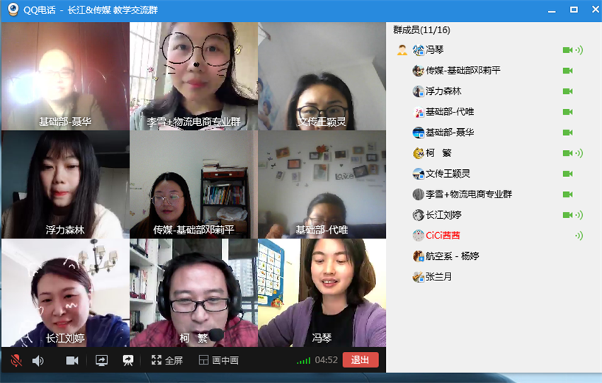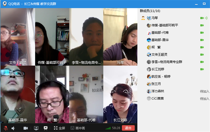 整个交流会气氛十分活跃,老师们情绪高涨,畅所欲言。会议持续了一个小时,最后商学院副院长柯繁与基础部主任聂华分别总结发言,并对今后的教学和交流提出了两点希望:一是希望疫情结束后各位老师能进行面对面的交流,共同探讨新的教学思路;二是希望各教研室可以根据实际需要多进行课程的交流和互动。