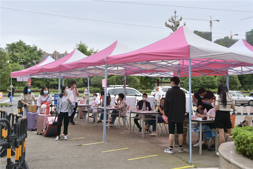 “夏至叶成帷,莘莘学子归”。根据四川省教育厅《关于高等学校2020年春季学期开学有关事项的通知》,5月6日起,各高校可根据生源特点、学生规模、疫情防控条件等情况,安排学生分期分批、错时错峰返校开学,结合学院实际情况, 6月2日崇州校区首批学生返校,绵竹校区第二批学生返校。该批返校学生为崇州校区18、19级音乐舞蹈系、电影电视系约900人,绵竹校区航空系、五专部、文管系、学前教育系1300余人。