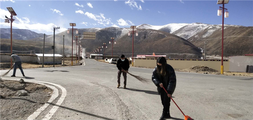 全乡组织大扫除,我早早地起床。迎着高原的阳光,和其他的乡干部一起去打扫公路。