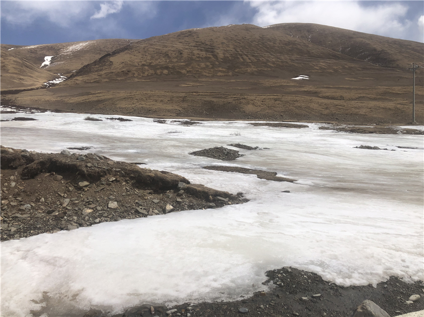 去厕所时,鞋子踩在厚厚的雪上发出沙沙的声音,留下深深的脚印。每一步都提醒自己要小心,但是还是摔倒了两次。高原生活不容易!