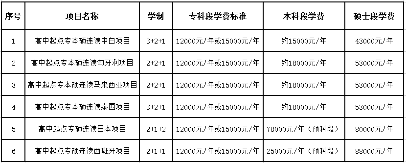 专科段除学费外只需缴纳3000元/年语言强化费,本科段学费约15000元/年。