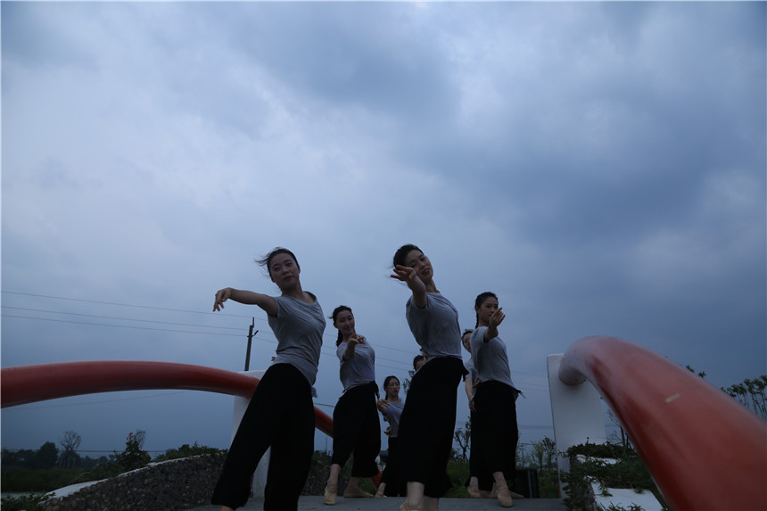 演出在何柳老师的钢琴弹唱《我和我的祖国》中拉开帷幕,熟悉而优美的旋律响彻湖面,在场的居民和游客饱受感染,也纷纷加入、合声歌唱。接着,由18级舞蹈表演的陈欣月、甘品语、李红英、杨璐等同学带来现代舞《芒种》,专业的舞蹈表演得到了大家的热烈掌声。