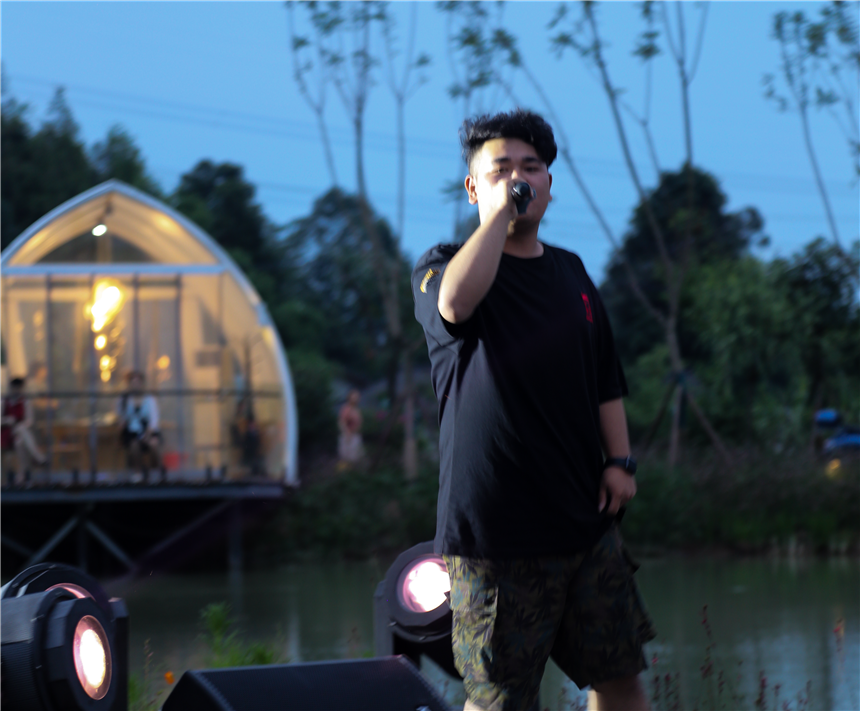 雷广汉、罗霖、王术戈、陈兴月等同学分别为大家带来了《成全》、《解放路》、《姑娘》、《至少还有你》等耳熟能详的流行歌曲,歌声悦耳动听,乘着傍晚的微风来到观众耳边、送入观众心间。王崟老师钢琴独奏的《桥边姑娘》琴声悠扬,和由张玉老师指导文和琴、李梦洁、胡贵连等“桥边姑娘”舞姿曼妙,灯光点点、湖水涟漪映衬下,她们宛若飞舞的精灵。王崟老师还为大家带来一首钢琴独奏《水边的阿狄丽娜》,缘起于希腊神话的音乐故事在幸福里水畔的琴声中纵情演绎,王老师娴熟专业的弹奏得到了观众们的欢呼和掌声。王科同学为带来了笛子独奏《铁血丹心》振奋人心,笛声传递出的红色力量、民族精神吸引更多有课驻足聆听。最后,整场演出在《太阳》的歌声中圆满结束。