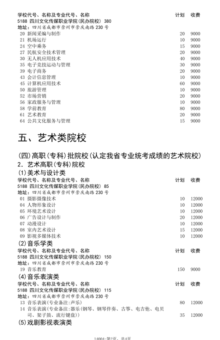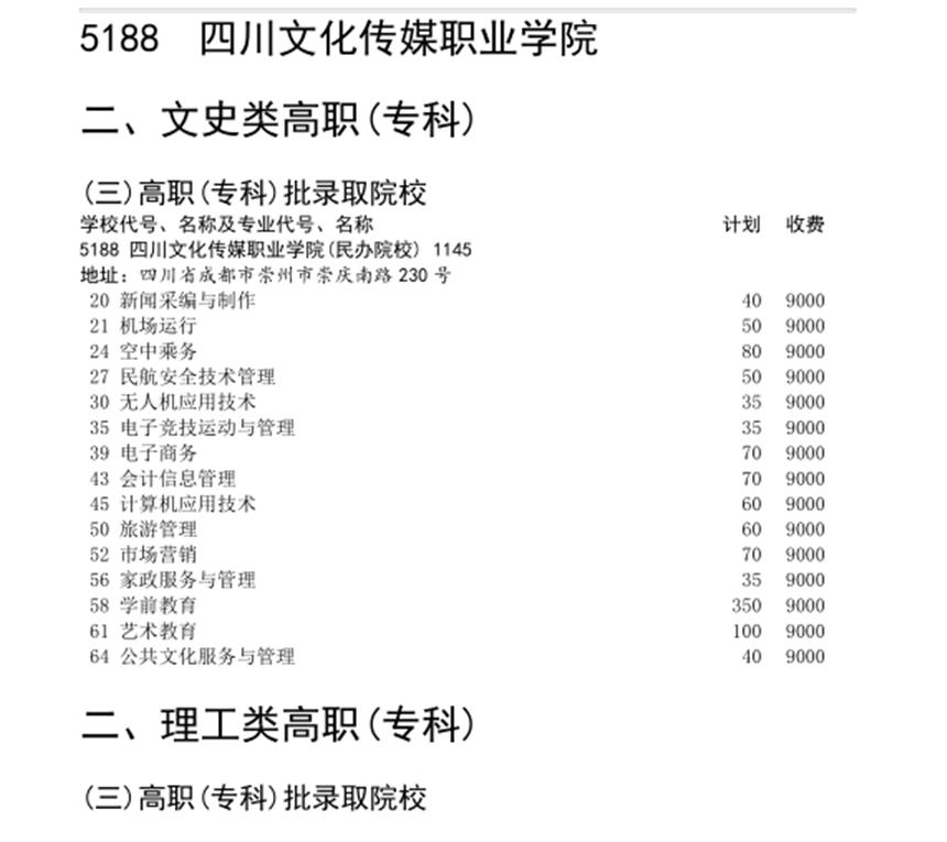 招生计划表