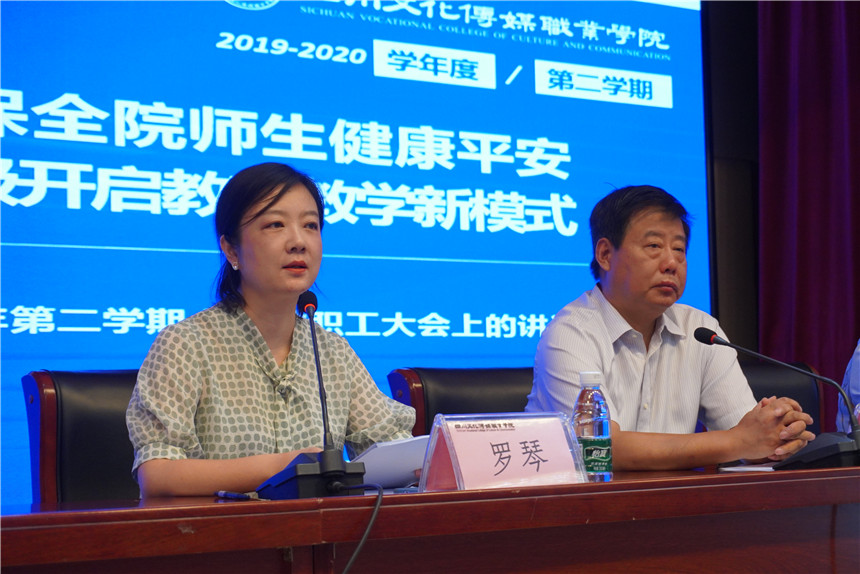 执行院长罗琴在大会上作《众志成城 同心抗疫 确保全院师生健康平安 共克时坚 顺势而为 积极开启教育教学新模式》的学期末总结报告。罗琴院长表示,在全国疫情防控持续向好的前提下,全体大会的召开能够凝聚人心、统一思想,为下一步工作鼓舞蓄力。