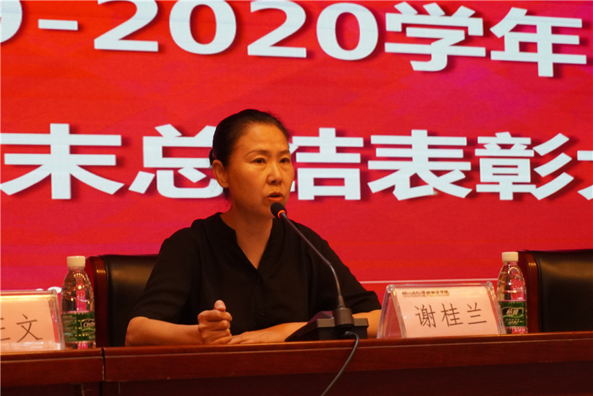 大会最后,党委书记谢桂兰进行总结发言,谢书记表示,通过今天的总结表彰大会,我们既要肯定成绩也要看到不足,更重要的是对个人职业道路树立目标、对学院未来发展充满信心。当前我院工作呈现出了更加快速、健康、稳定的发展态势,离不开全体教职员工的努力与付出。也希望大家继续保持发扬这股拼劲和韧劲,以饱满的精神和昂扬的斗志投入到新的一学期工作,为圆满完成年度工作任务做出更大贡献。