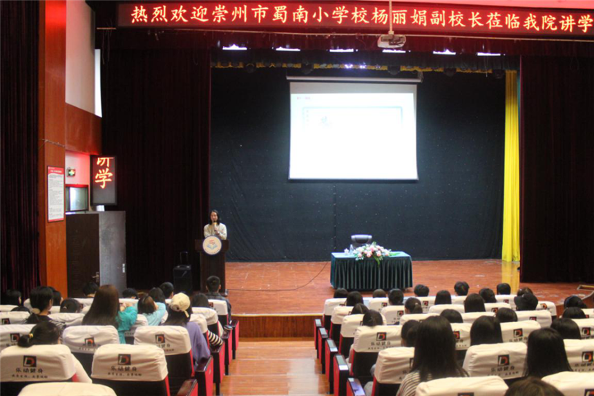 为了加快我院艺术教育专业的建设与发展,营造浓郁的校园学术氛围,让我院2020级艺术教育专业学生提前了解作为一名小学教师需要具备的职业素养和专业技能,引导大学生做好职业生涯规划,四川文化传媒职业学院艺术设计系邀请了崇州市蜀南小学校杨丽娟副校长来我院讲学。艺术设计系主任彭代明教授、2020级艺术教育专业学生代表参加了本次讲座,本次讲座由艺术设计系党支部书记、副系主任于兴财主持。