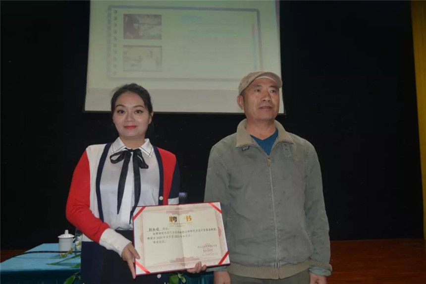讲座开始前,艺术设计系党支部书记、副系主任于兴财宣读了“关于聘任杨丽娟同志为四川文化传媒职业学院艺术设计系客座教授的决定”文件,艺术设计系主任彭代明教授为杨丽娟副校长颁发了聘书。