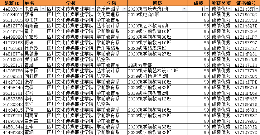 近日,易班网公布了“2021年第一届‘易班优课大学生求职技巧知识学习’活动”的学习结果信息,四川文化传媒职业学院165名学生荣获电子学习证书,其中23名学生成绩优秀。
