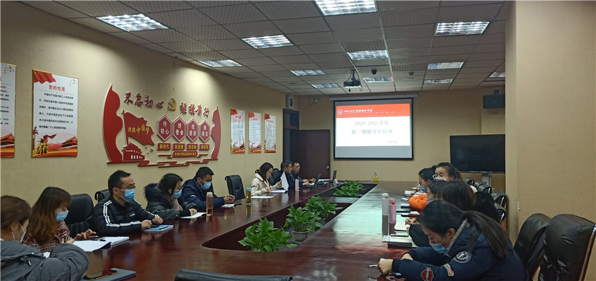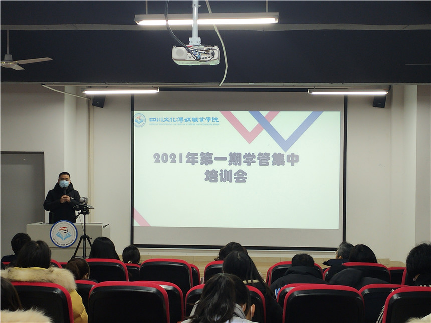 为深入学习宣传贯彻习近平新时代中国特色社会主义思想和党的十九大精神,全面贯彻落实全国高校思想政治工作会议精神和《普通高等学校辅导员队伍建设规定》,扎实做好各项学生管理工作,1月6日上午,四川文化传媒职业学院学生处举办2020-2021学年第一期辅导员培训。学院副院长李忠民、院长助理杨云、各系分管主任、学管科长、全体辅导员、学生处全体人员参加培训。希望教育集团副总裁徐春芳女士、培训管理部部长李想女士、辅导员培训部部长田光杰老师亲临培训现场。