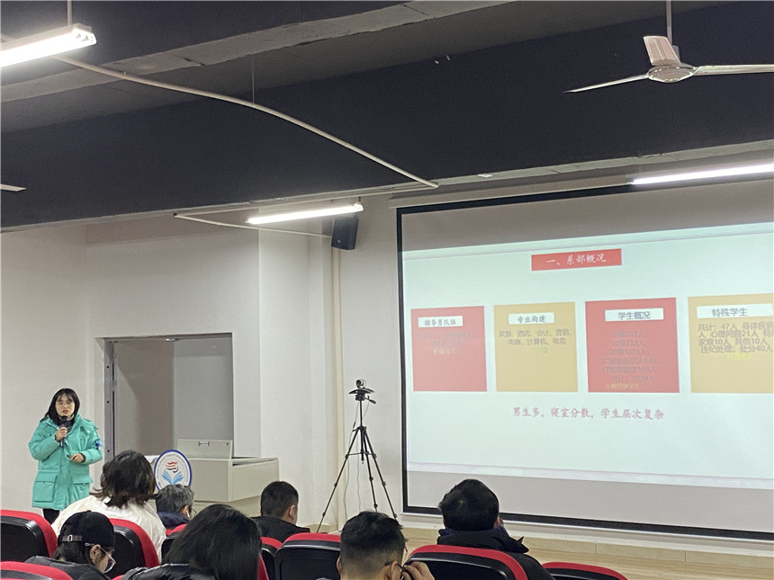 培训首先由学生处处长蒲江江、各系学管科长和各系辅导员代表就本学年的工作完成情况和特色亮点进行总结汇报。接着,希望教育集团培训部老师针对辅导员工作进行培训,此次培训由集团培训部田光杰老师主讲,从“明确定位用心服务学生”、“立德树人促进学生发展”、“创新理念抓活学生管理”、“悉心教导细微帮助学生”及“贴近实际走入学生内心”、“辅导员自身内涵提升”等六个方面进行了详细培训,各位参培辅导员积极学习、充分交流。