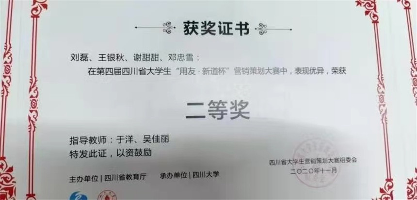 第四届四川省大学生“用友·新道杯”营销策划大赛喜获佳绩