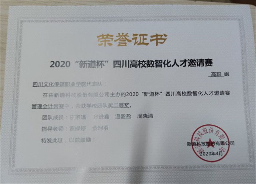 2020新道杯四川高校数智化人才邀请赛管理会计大赛喜获佳绩