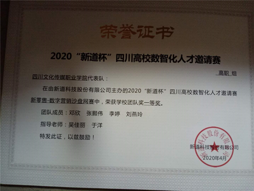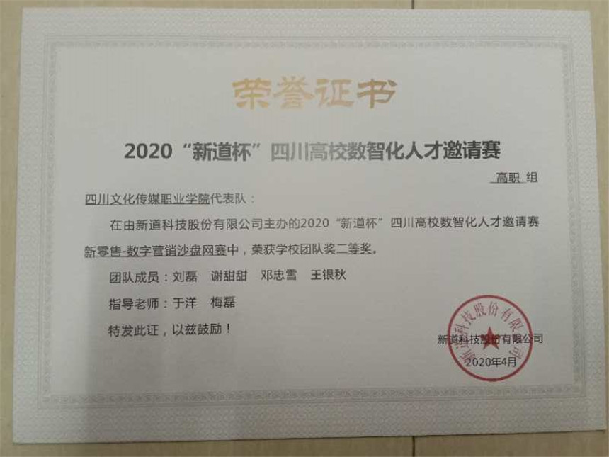 2020新道杯四川高校数智化人才邀请赛新零售.数字营销策划大赛喜获佳绩