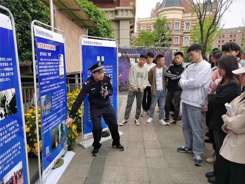 4月15日当天,学院开展了反邪教警示教育进校园活动,活动邀请到绵竹市公安局相关领导到场,市公安局警官现场讲解反邪教相关知识,学生通过关注中国反邪教微信公众号、现场聆听、浏览宣传栏线上、线下方式相结合全面了解反邪教内容,学院副院长罗江、院长助理杨云和同学们一同参与了宣传教育活动。