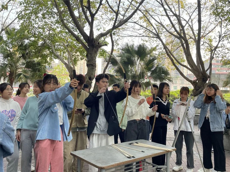 本次游园会共设置六项传统活动,包括射箭、投壶、猜灯谜、穿针引线、剪纸、“海底捞月”。在活动之前,驻场教师会对每个项目的历史背景进行详细的讲解,选择具有代表性的历史典故和名人轶事,前来参与的学生听得津津有味,将“春游会”的现场气氛一次次点燃。
