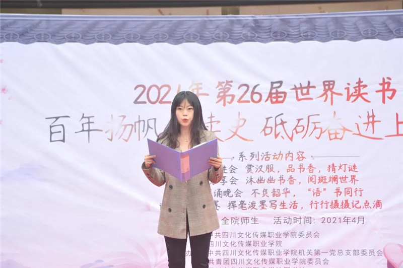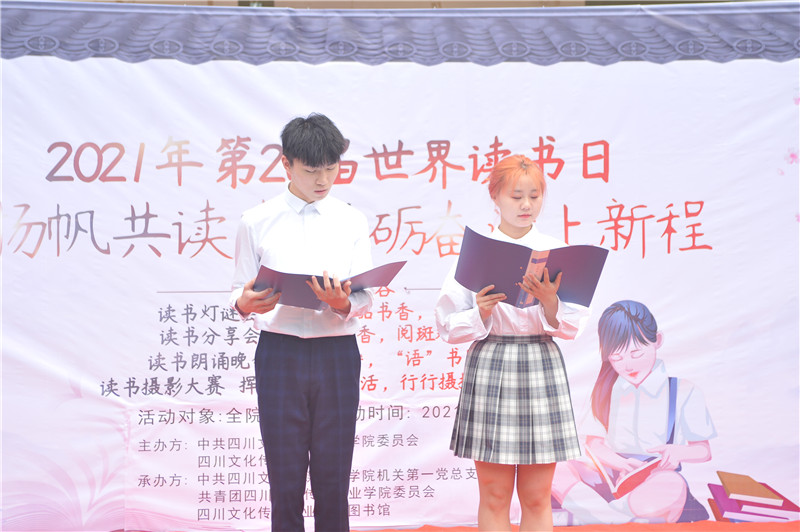 “如果说人生是路途,那书籍就是一盏路灯;如果说人生是航行,那书籍就是一面船帆……”学院播音主持专业的同学们在开幕式上朗诵的《用书点亮人生》将活动氛围引向高潮。