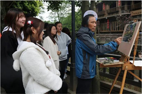 午休过后,各带队教师按照学生写生分班进行指导,带队进入古镇进行绘画选点,做到统一行动、组织有序,同时各带队教师分别就景区绘画内容进行写生示范讲解。