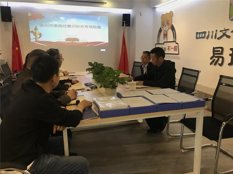 2021年4月21日上午,崇州市文联常务副主席姜孝云、崇州市教育局德体卫艺科科长雷云一行莅临我院检查指导意识形态专项工作。学院党委书记周世伟在易班中心主持汇报了相关工作。