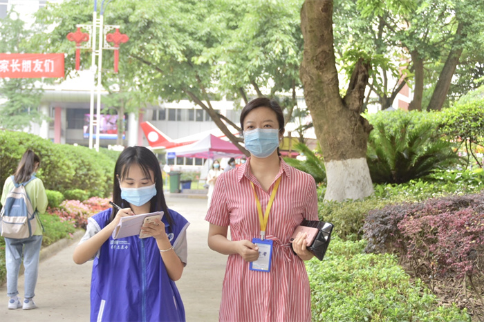 2019年迎新宣传时,侯雪婷已经能独立带领学生团队了,一行几个小伙伴前往绵竹校区进行迎新新闻采写。太阳暴晒,大家的红马甲都被汗水浸湿,同行的摄影小记者中暑后依然坚持把两天的宣传工作做完,侯雪婷看在眼里记在心里,她感受到伙伴之间相互鼓舞的力量,也更加相信这个团队她没有来错!