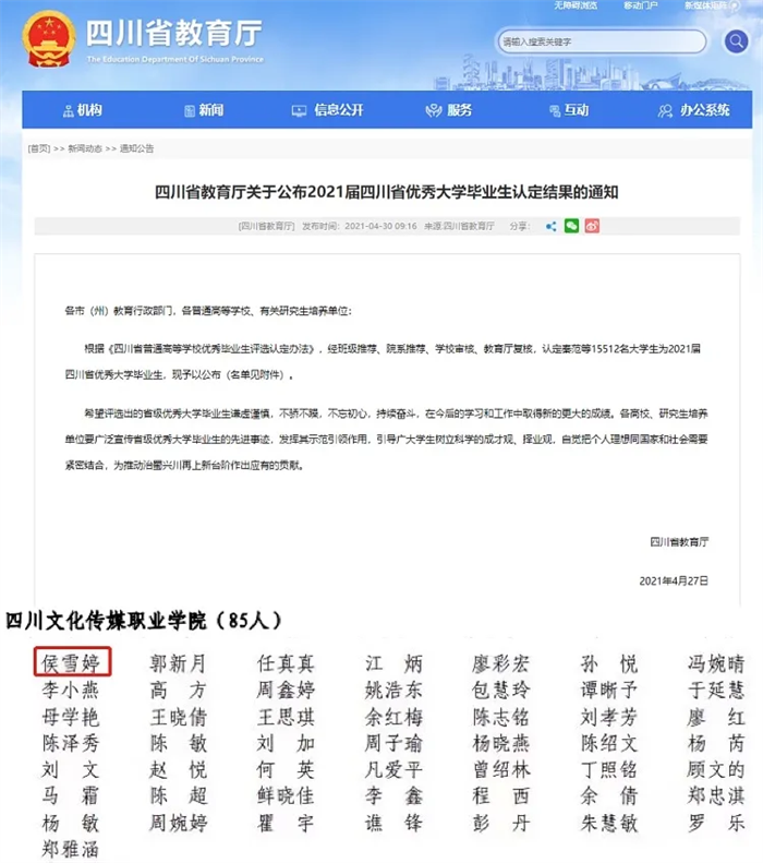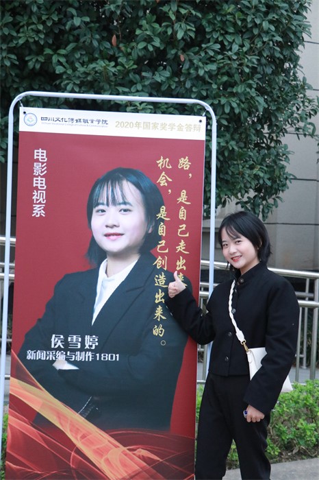 她热爱学习与生活,始终相信用心、专注地做好每一件事就是成功。她现担任数字媒体系18级新闻采编与制作专业班长、院宣传处实习生,曾担任宣传处学生记者,数字媒体系宣传中心新闻部部长、辅导员助理,工作认真,尽职尽责,学习成绩始终保持专业第一系部前三。她担任学生记者期间撰写的稿件,被人民网、中国高校之窗、四川省教育厅、四川教育信息网等国家级、省级媒体转发报道。她就是侯雪婷,四川文化传媒职业学院2019——2020年度国家奖学金获得者、2021届四川省优秀大学毕业生。