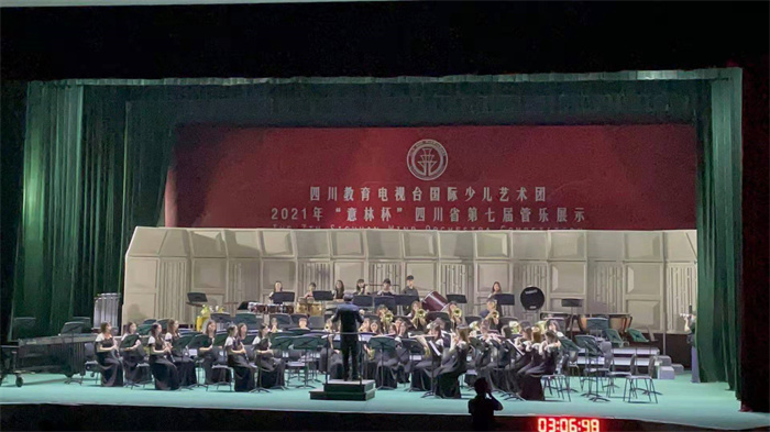 本届比赛于5月29、30日在四川师范大学龙湖剧场举行,依次由中学组、大学组、小学组进行管乐展示。本次展示中,参赛乐团现场抽选乐谱,并在临场前发放乐谱,乐团需在结束指定曲目和自选曲目演奏后进行视奏。本次比赛由学前教育学院杨雅婷老师、刘姝姝老师指导,杨雅婷老师执棒指挥,管乐团参赛选手均为学前教育专业学生,最终在40余支参赛队伍中脱颖而出,取得了大赛三等奖的好成绩,不仅展现了管乐团师生积极进取的精神风貌,同时也充分展示了学前教育学院分层教学的良好成果。
