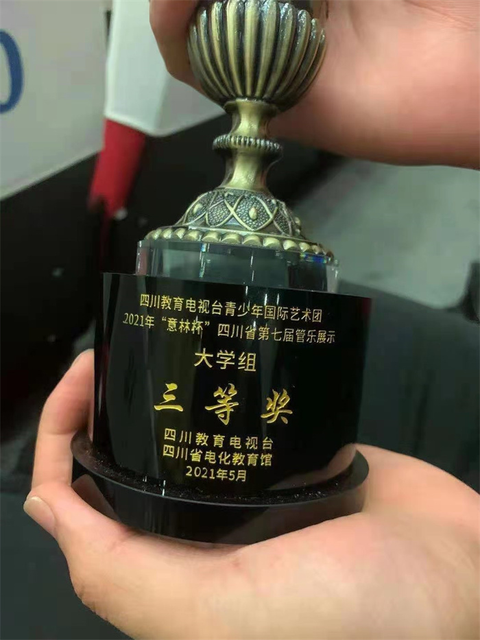 近日,四川文化传媒职业学院管乐团参加由四川教育电视台、四川省电化教育馆主办,四川师范大学、成都意林乐器有限公司共同承办的2021年“意林杯”四川省第七届管乐展演活动。学前教育学院管乐团演奏的作品《半个月亮爬上来》和《兵马俑》凭借出色发挥,获得了比赛的三等奖,为学院赢得了荣誉。