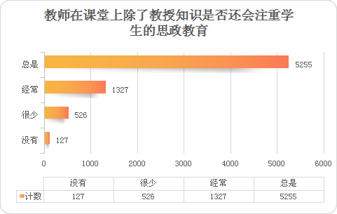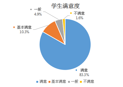 本次在线问卷调查评教主体为全校所有在校学生,评价对象为全校所有任课教师,采用一对一评教方式。本次调查共回收有效问卷7235 份,覆盖全校240个教学班,覆盖全校431名任课教师,学生课程满意度达83.3%,基本满意10.3%,一般满意4.9%。不满意1.6%。