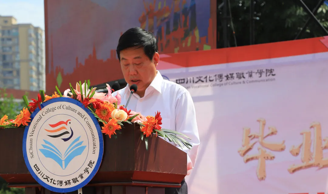 在四川文化传媒职业学院2021届毕业典礼上,杨宁院长动情地说到:“如今,你们虽然‘小荷才露尖尖角’,不日就将‘接天莲叶无穷碧’,到那时一定是‘映日荷花别样红’,我们为你们鼓掌点赞!祝福你们!”箴言虽短,情谊绵长,杨宁院长一席话让在场的很多学生红了眼眶。